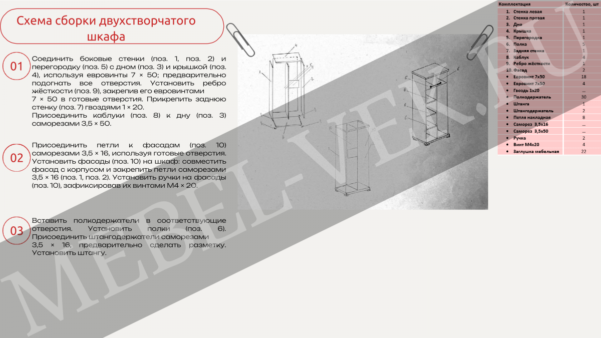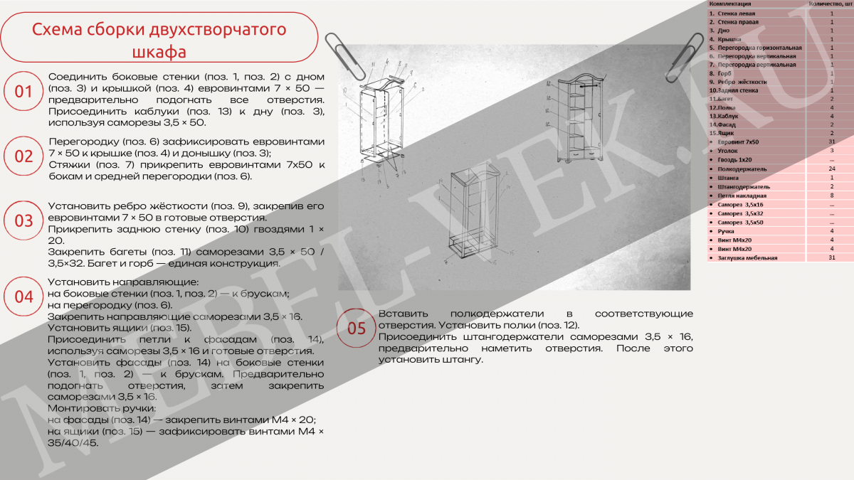 4. Схема сборки двухстворчатого шкафа - скачать.