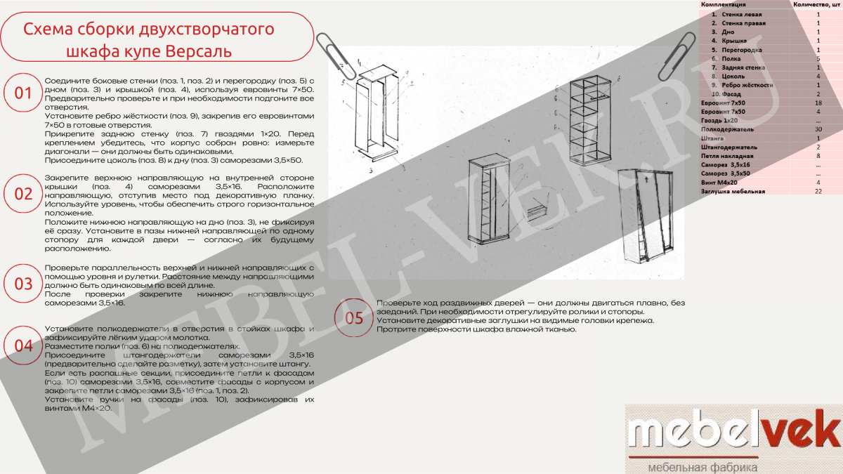 13. Схема сборки двухстворчатого шкафа купе Версаль - скачать.