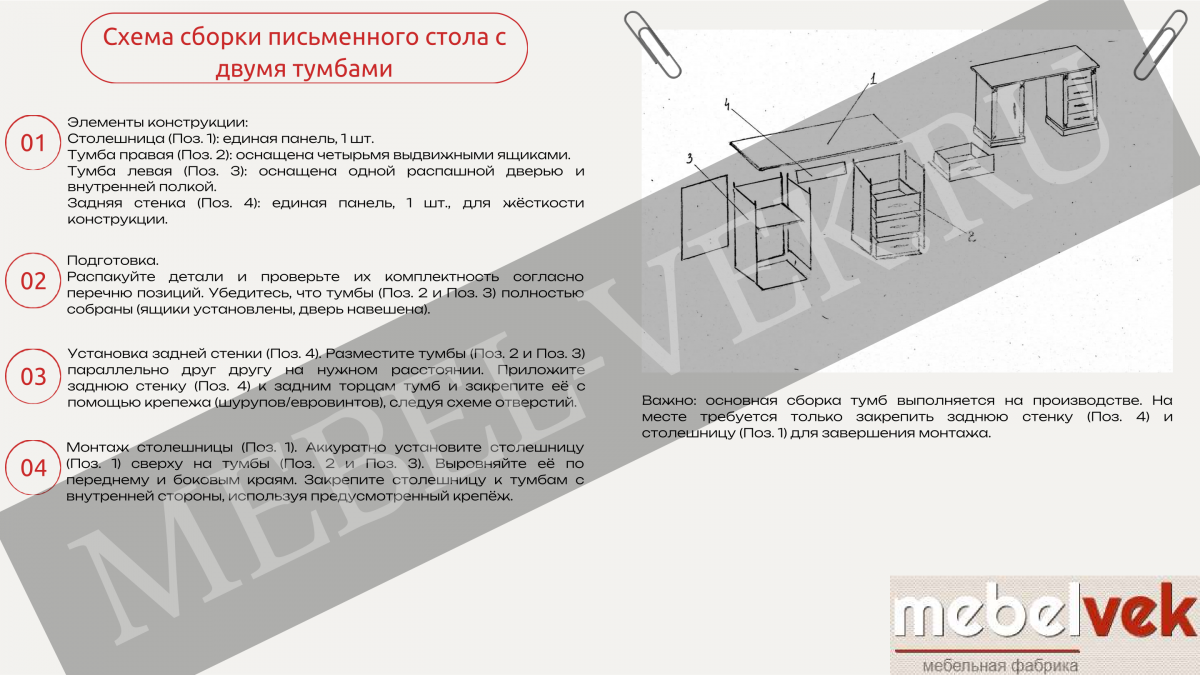 16. Схема сборки письменного стола с двумя тумбами - скачать.