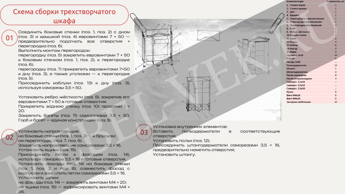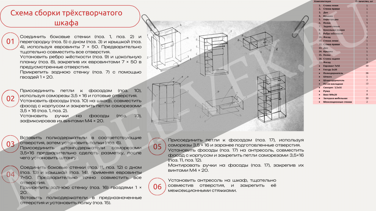 7. Схема сборки трехстворчатого шкафа - скачать.