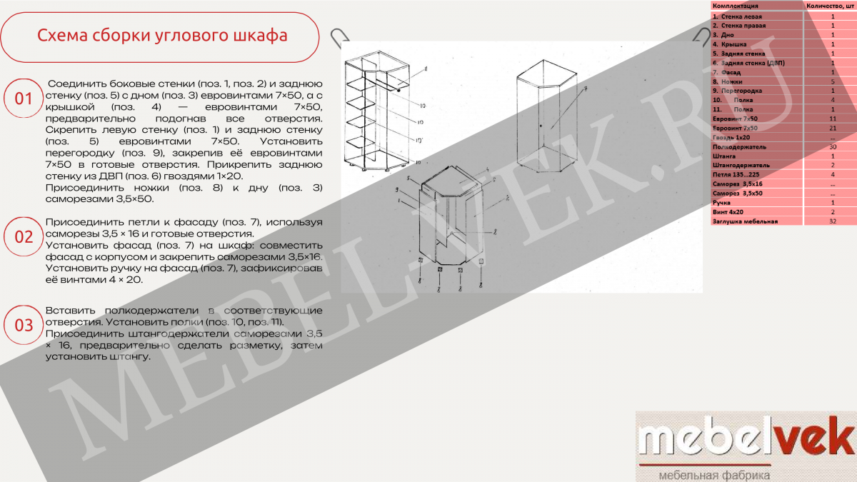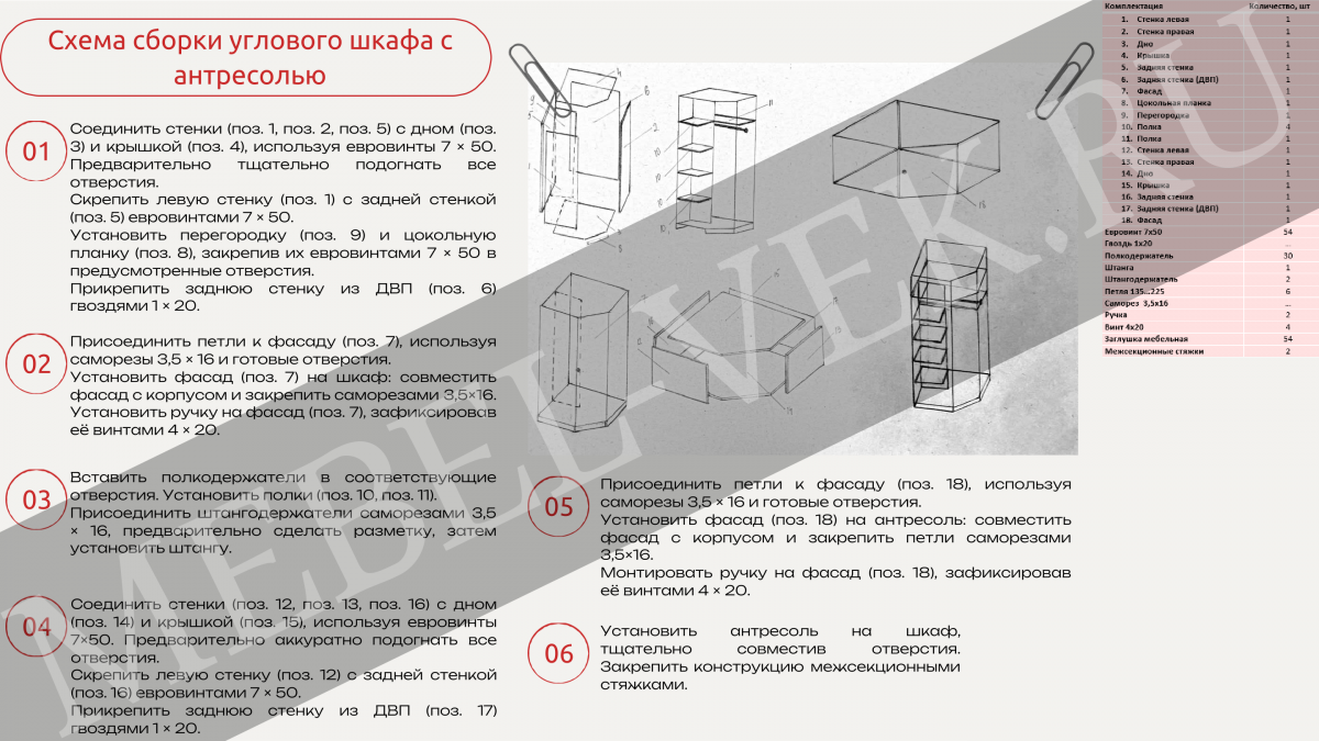 9. Схема сборки углового шкафа с антресолью - скачать.