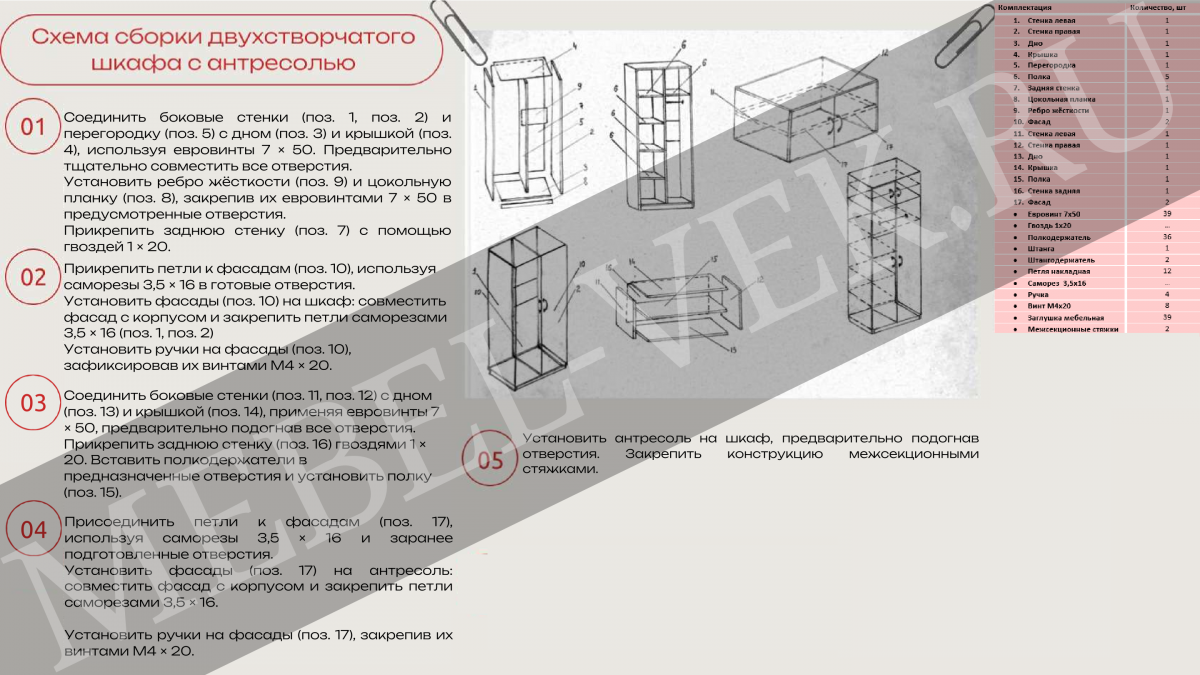 6. Смеха сборки двухстворчатого шкафа с антресолью - скачать.